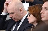Переговоры президента России Владимира Путина с президентом Казахстана Касым-Жомартом Токаевым в Кремле. Министр финансов России Антон Силуанов (слева) и председатель Центрального Банка России Эльвира Набиуллина (в центре) перед началом переговоров.