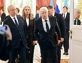 Переговоры президента России Владимира Путина с президентом Казахстана Касым-Жомартом Токаевым в Кремле. Руководитель образовательного фонда "Талант и успех", председатель совета федеральной территории Сириус Елена Шмелева (слева) и министр просвещения России Сергей Кравцов перед началом переговоров.