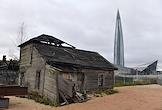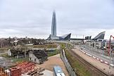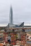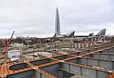 Строительство развязки и трассы М-32 в районе бизнес-центра "Лахта-центр". Жанровая фотография.