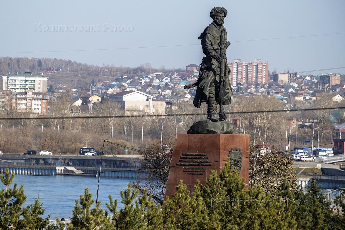 Виды Иркутска. Памятник землепроходцу Якову Похабову на берегу реки Ангары.