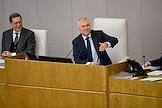 Пленарное заседание Государственной Думы (ГД) России. Член комитета ГД России по охране здоровья Андрей Горохов (в центре), член комитета ГД России по бюджету и налогам Айрат Фаррахов (справа) и член комитета ГД России по экологии, природным ресурсам и охране окружающей среды Виталий Лихачев (слева) во время заседания.