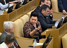 Пленарное заседание Государственной думы (ГД) России. Заместитель председателя комиссии ГД России по Регламенту и обеспечению деятельности Государственной Думы Раиса Кармазина (в центре) во время заседания.