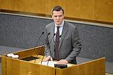 Пленарное заседание Государственной думы (ГД) России. Первый заместитель председателя комитета ГД России по государственному строительству и законодательству Даниил Бессарабов во время выступления на заседании.