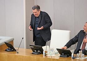 Пленарное заседание Государственной думы (ГД) России. Председатель комитета ГД России по бюджету и налогам Андрей Макаров во время заседания.