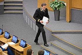 Пленарное заседание Государственной думы (ГД) России. Секретарь Пленума Верховного суда России Олег Зателепин (слева) и полномочный представитель президента России в ГД России Гарри Минх (справа) на заседании.
