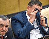 Пленарное заседание Государственной думы (ГД) России. Член комитета ГД России по международным делам Зелимхан Муцоев во время заседания.
