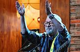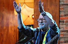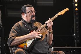 Концерт "Квартирник у Маргулиса. 10 лет." в многофункциональном комплексе "Live Арена". Американский актер, продюсер, музыкант, мастер айкидо Стивен Сигал во время выступления на концерте.