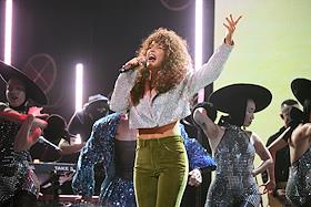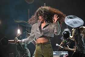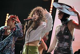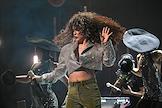Концерт "Квартирник у Маргулиса. 10 лет." в многофункциональном комплексе "Live Арена". Певица Юлия Зиверт (Zivert) во время выступления на концерте.