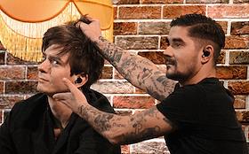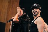 Концерт "Квартирник у Маргулиса. 10 лет." в многофункциональном комплексе "Live Арена". Рэп-исполнитель ST (Александр Степанов) (слева) и музыкант, телеведущий Евгений Маргулис (справа) во время выступления.
