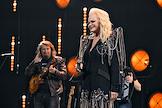 Концерт "Квартирник у Маргулиса. 10 лет." в многофункциональном комплексе "Live Арена". Солист группы Uma2rman Владимир Кристовский (второй справа) и певица Алсу (справа) во время выступления.