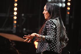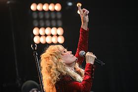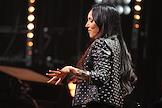 Концерт "Квартирник у Маргулиса. 10 лет." в многофункциональном комплексе "Live Арена". Лидер группы "Сурганова и оркестр" Светлана Сурганова во время выступления.