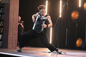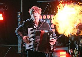 Концерт "Квартирник у Маргулиса. 10 лет." в многофункциональном комплексе "Live Арена". Лидер группы "Рекорд Оркестр" Тимофей Копылов во время выступления.
