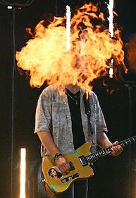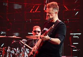 Концерт "Квартирник у Маргулиса. 10 лет." в многофункциональном комплексе "Live Арена". Участник группы The Hatters Павел Личадеев во время выступления.