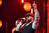 Концерт "Квартирник у Маргулиса. 10 лет." в многофункциональном комплексе "Live Арена". Певец Александр Иванов (справа) во время выступления.