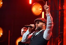 Концерт "Квартирник у Маргулиса. 10 лет." в многофункциональном комплексе "Live Арена". Шоумен Тимур Родригез (справа) во время выступления на концерте.