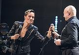 Концерт "Квартирник у Маргулиса. 10 лет." в многофункциональном комплексе "Live Арена". Солист группы "Агата Кристи" Вадим Самойлов (справа) и телеведущий, музыкант Евгений Маргулис (слева) во время выступления.