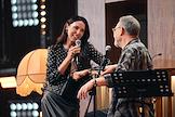 Концерт "Квартирник у Маргулиса. 10 лет." в многофункциональном комплексе "Live Арена". Певица Алсу (слева) и музыкант, телеведущий Евгений Маргулис (справа) во время выступления.