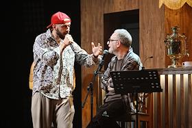 Концерт "Квартирник у Маргулиса. 10 лет." в многофункциональном комплексе "Live Арена". Музыкант, телеведущий Евгений Маргулис (слева) и лидер группы "Рекорд Оркестр" Тимофей Копылов (справа) во время выступления.