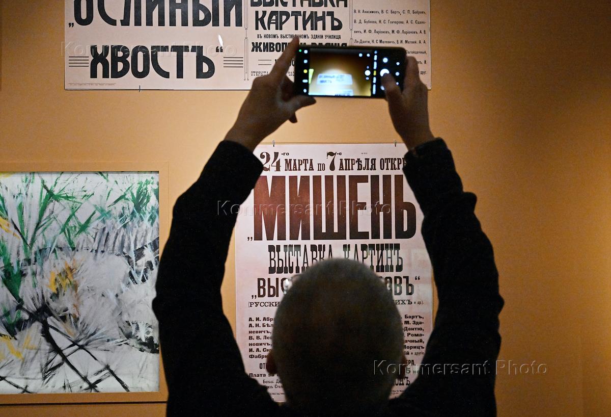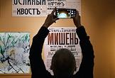 Выставка "Лицо нового времени: Русская футуристическая книга" в Государственном музее истории российской литературы. Посетители на выставке.
