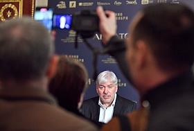Премьерный показ фантастического драматического фильма "Авиатор" по одноименному роману Евгения Водолазкина в Александринском театре. Продюсер Сергей Катышев перед показом.