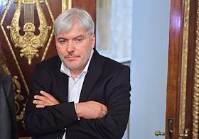 Премьерный показ фантастического драматического фильма "Авиатор" по одноименному роману Евгения Водолазкина в Александринском театре. Писатель Евгений Водолазкин перед показом.