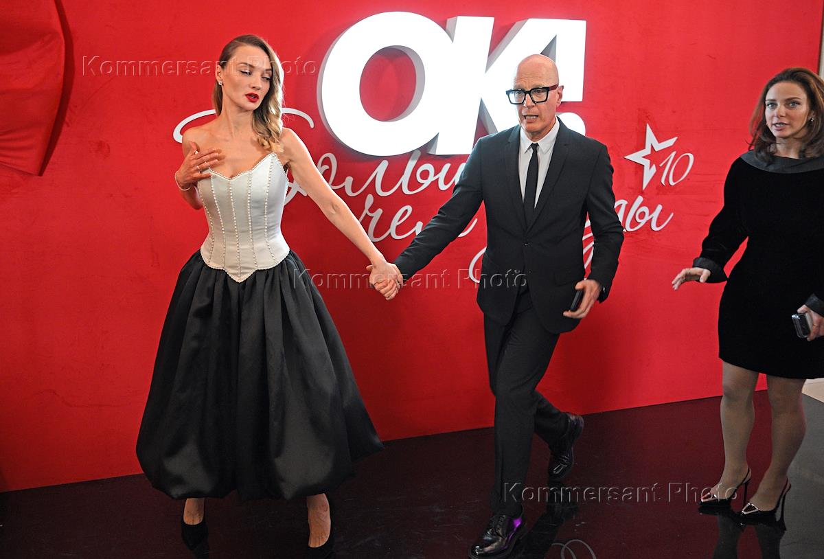Церемония вручения премии журнала ОК "Больше чем звезды" в отеле Four Seasons. Телеведущая Регина Тодоренко (слева) и певец Влад Топалов на церемонии.