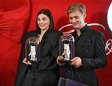 Церемония вручения премии журнала ОК "Больше чем звезды" в отеле Four Seasons. Актеры Дарья Котрелева (слева) и Олег Савостюк на церемонии.