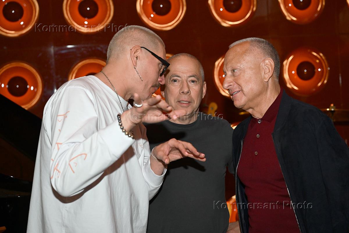 Ужин по случаю открытия азиатского ресторана-клуба от Novikov Group Kaifuso. Рестораторы Денис Бобков (слева) и Аркадий Новиков (в центре) на ужине.