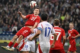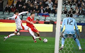 BetBoom - Товарищеский матч по футболу между сборными командами России и Чили на стадионе "Фишт". Игрок сборной России Константин Тюкавин (в центре) во время матча.