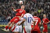 BetBoom - Товарищеский матч по футболу между сборными командами России и Чили на стадионе "Фишт". Игрок сборной Чили Габриэль Суасо (справа) и игрок сборной России Игорь Дивеев (слева) во время матча.