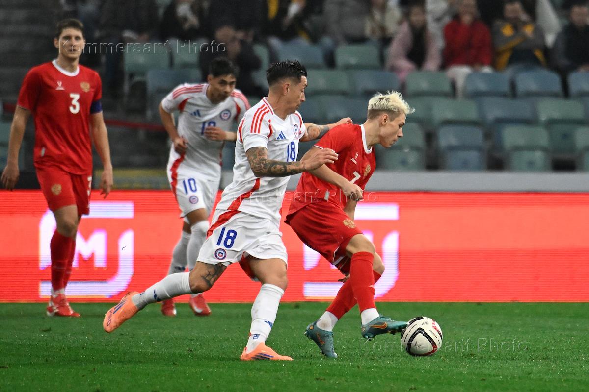BetBoom - Товарищеский матч по футболу между сборными командами России и Чили на стадионе "Фишт". Игрок сборной России Матвей Лукин (слева) во время матча.
