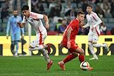BetBoom - Товарищеский матч по футболу между сборными командами России и Чили на стадионе "Фишт". Игрок сборной Чили Гонсало Тапия (слева) и игрок сборной России Игорь Дивеев (справа) во время матча.