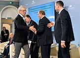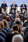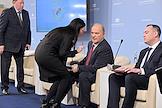 Заседание "круглого стола" на тему: "Законодательное регулирование развития биотехнологий в Российской Федерации. Агроэкологический аспект" с участием председателя ЦК КПРФ, руководителя фракции КПРФ в Государственной думе (ГД) России Геннадия Зюганова в ГД России. Слева направо: директор ЗАО "Совхоз имени Ленина" Павел Грудинин, первый заместитель председателя комитета ГД по труду, социальной политике и делам ветеранов Николай Коломейцев и статс-секретарь - заместитель министра сельского хозяйства России Максим Увайдов во время заседания.