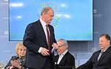 Заседание "круглого стола" на тему: "Законодательное регулирование развития биотехнологий в Российской Федерации. Агроэкологический аспект" с участием председателя ЦК КПРФ, руководителя фракции КПРФ в Государственной думе (ГД) России Геннадия Зюганова в ГД России. Жанровая фотография. Пресс-вол.