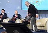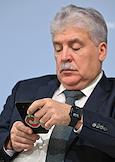 Заседание "круглого стола" на тему: "Законодательное регулирование развития биотехнологий в Российской Федерации. Агроэкологический аспект" с участием председателя ЦК КПРФ, руководителя фракции КПРФ в Государственной думе (ГД) России Геннадия Зюганова в ГД России. Директор ЗАО "Совхоз имени Ленина" Павел Грудинин во время заседания.