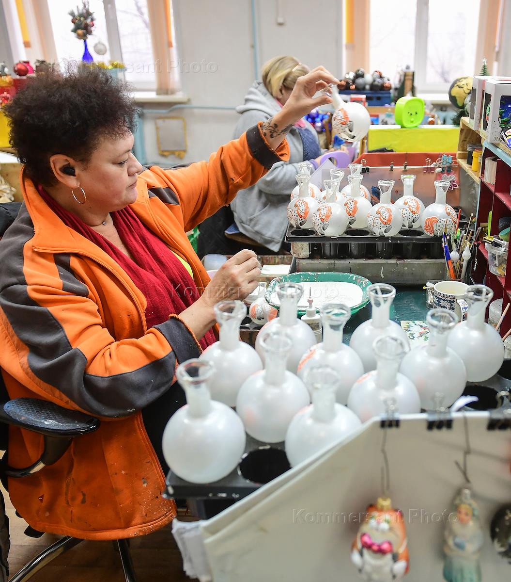 Работа фабрики новогодних игрушек "Бирюсинка". Жанровая фотография. Готовая продукция.