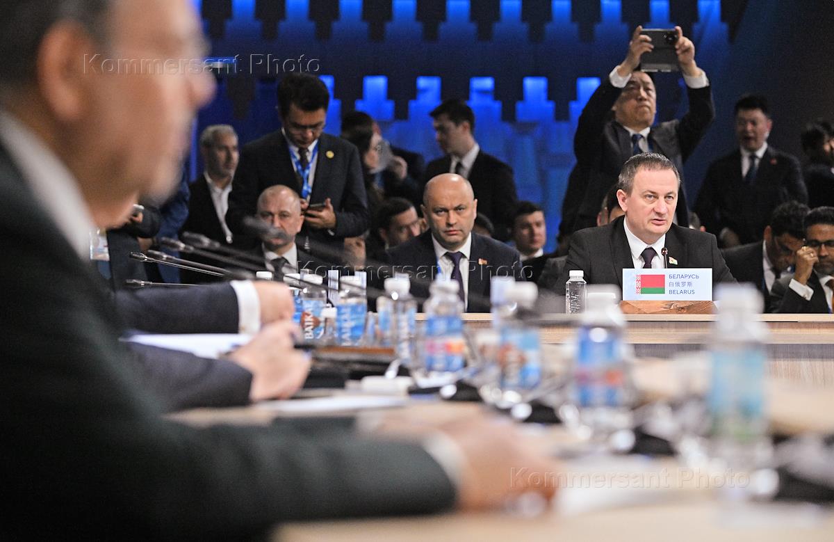 An expanded meeting of the Shanghai Cooperation Organization (SCO) Heads of Government Council at the Russia National Center. Prime Minister of the Republic of Belarus Alexander Turchin during the meeting.