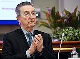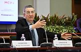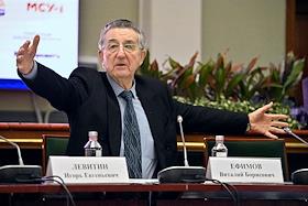 Транспортная неделя 2025. XIX Международный форум "Транспорт России". Всероссийский круглый стол "Россия – речная транспортная держава" в Торгово-промышленной палате. Ректор Волжского государственного университета водного транспорта Игорь Кузьмичев во время мероприятия.