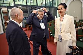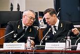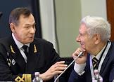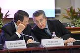 Транспортная неделя 2025. XIX Международный форум "Транспорт России". Всероссийский круглый стол "Россия – речная транспортная держава" в Торгово-промышленной палате. Ректор Волжского государственного университета водного транспорта Игорь Кузьмичев (слева) и ректор Государственного университета морского и речного флота имени адмирала С.О.Макарова Сергей Барышников (справа) во время мероприятия.