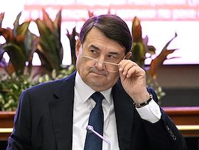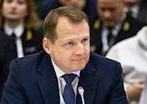 Транспортная неделя 2025. XIX Международный форум "Транспорт России". Совместное заседание комитета Совета Федерации (СФ) России по экономической политике и комитета Государственной думы (ГД) России по транспорту и развитию транспортной инфраструктуры "О современных подходах к развитию пунктов пропуска через Государственную границу Российской Федерации" в Гостином дворе. Заместитель министра сельского хозяйства России Роман Некрасов во время заседания.