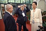 Транспортная неделя 2025. XIX Международный форум "Транспорт России". Всероссийский круглый стол "Россия – речная транспортная держава" в Торгово-промышленной палате. Президент Научно-исследовательского института автомобильного транспорта (ОАО "НИИАТ") Алексей Васильков (в центре) и старший руководитель Службы корпоративной политики ГУП "Мосгортранс" Римма Филиппова (справа) перед началом мероприятия.