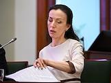 Транспортная неделя 2025. XIX Международный форум "Транспорт России". Всероссийский круглый стол "Россия – речная транспортная держава" в Торгово-промышленной палате. Исполняющая обязанности генерального директора СК "Волжское пароходство" Елена Крившич во время мероприятия.