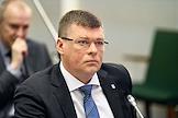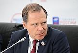 Транспортная неделя 2025. XIX Международный форум "Транспорт России". Совместное заседание комитета Совета Федерации (СФ) России по экономической политике и комитета Государственной думы (ГД) России по транспорту и развитию транспортной инфраструктуры "О современных подходах к развитию пунктов пропуска через Государственную границу Российской Федерации" в Гостином дворе. Представитель в СФ России от законодательного (представительного) органа государственной власти Санкт-Петербурга Андрей Кутепов во время заседания.