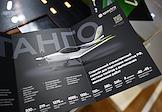 Транспортная неделя 2025. Выставка "Транспорт России" в Гостином дворе. Жанровая фотография. Буклет, посвященный российскому лёгкому самолёту Spectra PV-10 Tango, разработанный и производимый компанией Spectra Aircraft на стенде компании.