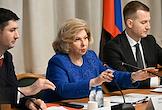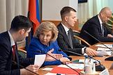 Заседание комитета Государственной думы (ГД) России по молодежной политике совместно с Уполномоченным по правам человека в России Татьяной Москальковой в ГД России. Уполномоченный по правам человека в России Татьяна Москалькова (в центре) и председатель комитета ГД России по молодежной политике Артем Метелев (второй справа) во время заседания.
