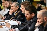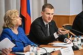 Заседание комитета Государственной думы (ГД) России по молодежной политике совместно с Уполномоченным по правам человека в России Татьяной Москальковой в ГД России. Ответственный секретарь Координационного Совета Национальной Родительской Ассоциации (НРА) Алексей Гусев (в центре) и вице-президент Национального автомобильного союза (НАС) Ян Хайцеэр (справа) во время заседания.
