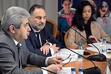 Заседание комитета Государственной думы (ГД) России по молодежной политике совместно с Уполномоченным по правам человека в России Татьяной Москальковой в ГД России. Слева направо: ответственный секретарь Координационного Совета Национальной Родительской Ассоциации (НРА) Алексей Гусев, вице-президент Национального автомобильного союза (НАС) Ян Хайцеэр и руководитель международного направления в Аппарате Ассоциации юристов России Ву Тху Ча Ми во время заседания.