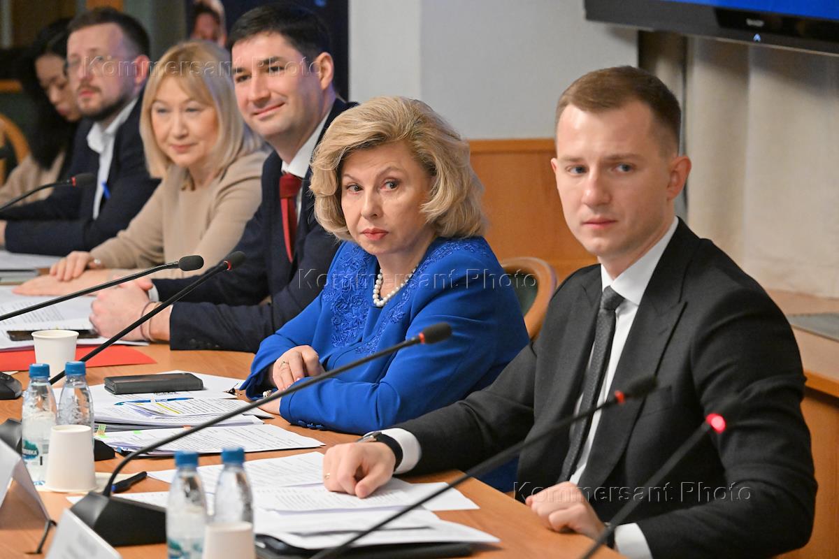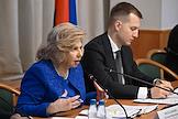Заседание комитета Государственной думы (ГД) России по молодежной политике совместно с Уполномоченным по правам человека в России Татьяной Москальковой в ГД России. Уполномоченный по правам человека в России Татьяна Москалькова (слева) и председатель комитета ГД России по молодежной политике Артем Метелев (справа) во время заседания.