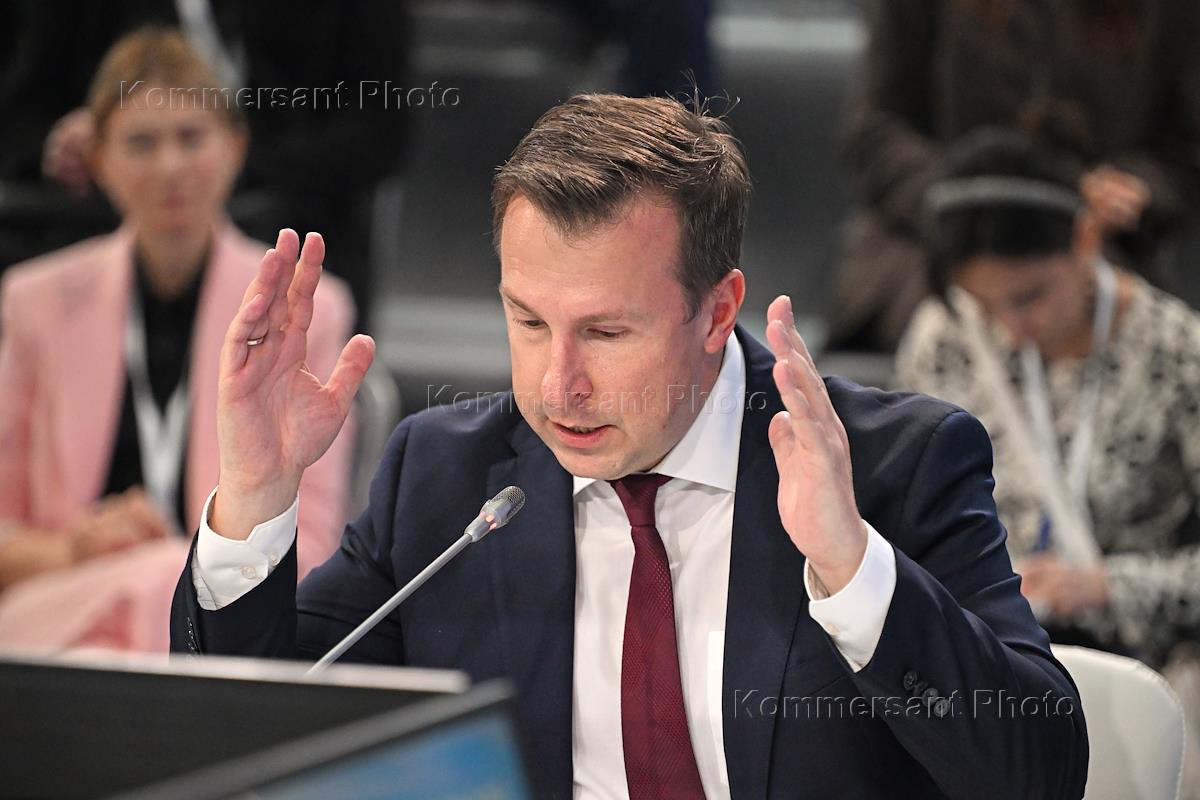 Transport Week 2025. 19th International Forum and Exhibition "Transport of Russia" at Gostiny Dvor. Deputy Minister of Economic Development of the Russian Federation Mikhail Kaminsky at the forum.