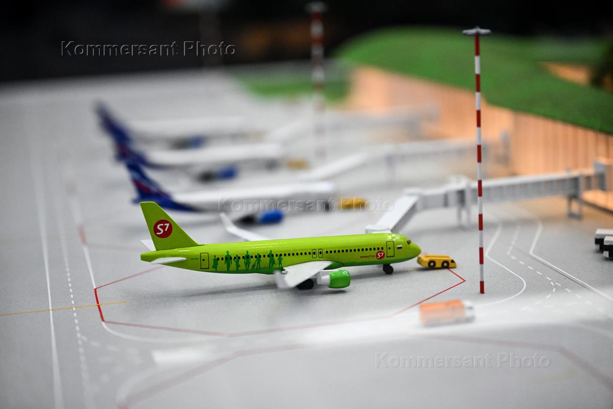 Transport Week 2025. The "Transport of Russia" exhibition at Gostiny Dvor. Genre photography. A model of an airplane parking lot on the airport field.